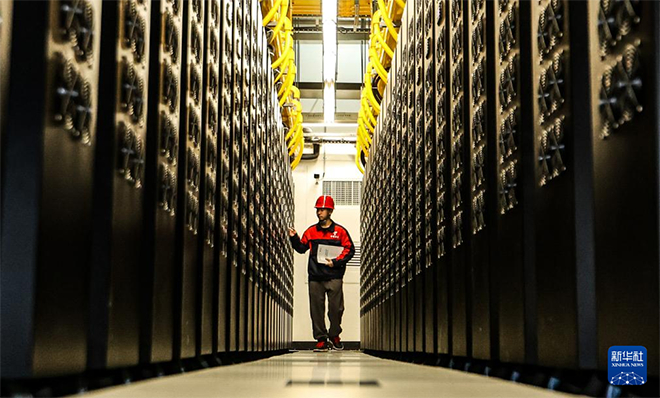 工作人员在贵安超算中心数据机房内工作。新华社记者 刘续 摄