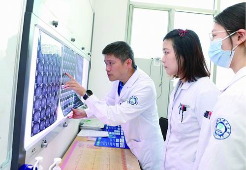 陈竹(左一)与团队成员讨论患者病情。受访者供图