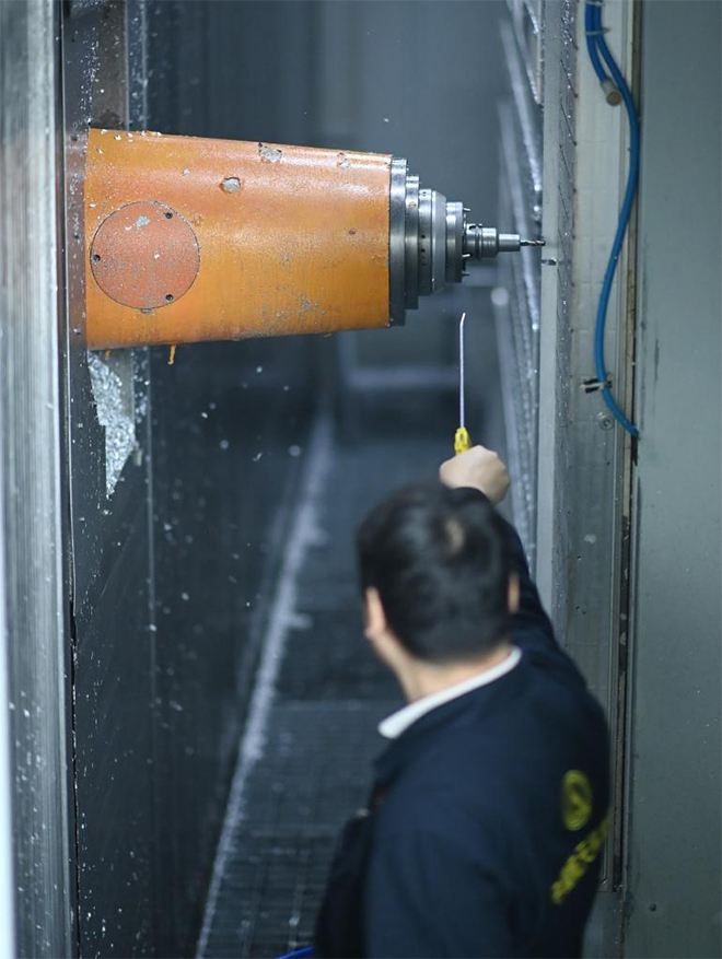 姚亚超在检查数控加工车间的刀头。新华社记者 赵子硕 摄