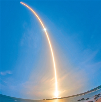 搭载天舟九号货运飞船的长征七号遥十运载火箭从海南文昌飞向太空。 蒙钟德摄(人民视觉)