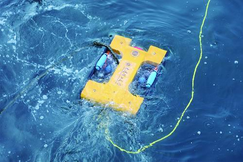 ▲正在参加抓取比赛的水下机器人。
